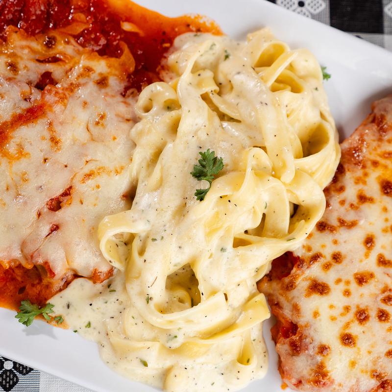 Chicken parmesan, fettuccine alfredo, lasagna